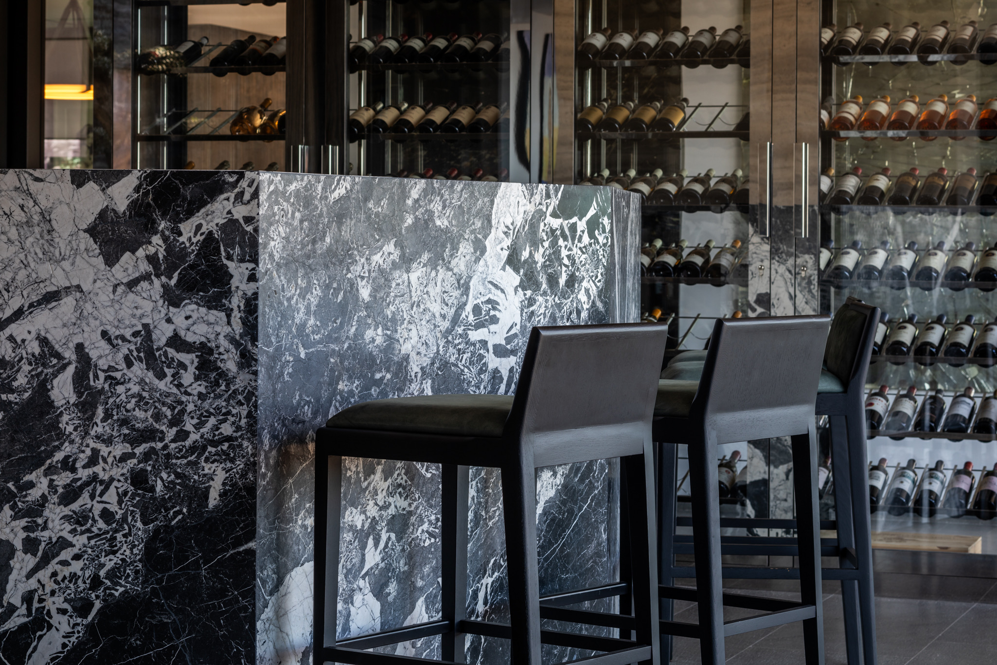 A private wine cellar houses an exclusive collection of distinguished Italian and French labels, selected for their depth, rarity, and provenance. The adjoining bar invites you to explore Omai’s signature cocktails — crafted with precision and quiet artistry.